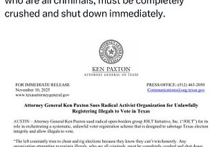 Texas Attorney General Ken Paxton announced that he has sued Harris County, its Commissioners Court, and several officials in their official capacities…