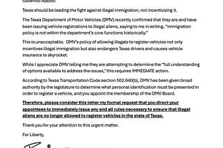 Texas Rep. Brian Harrison Demands Gov. Greg Abbott Immediately Stop DMV from Issuing Vehicle Registrations to Illegal Aliens