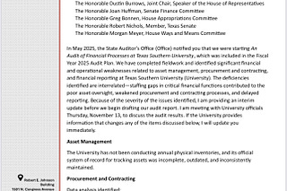 Texas State Auditor Uncovers Major Financial misappropriation totaling $282 million at Texas Southern University