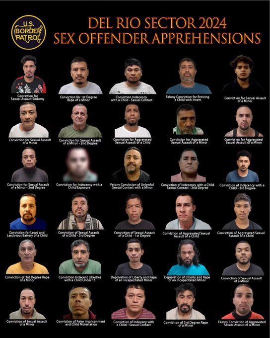 54 convicted sex offenders have been nabbed by Border Patrol agents in the Del Rio Sector this fiscal year—Since October 1, 2023.