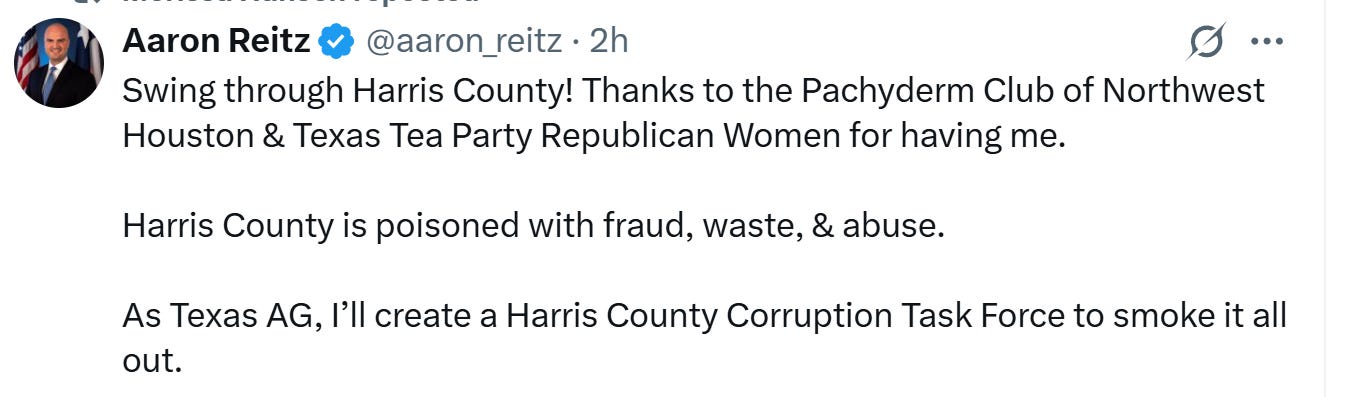 Aaron Reitz Vows Crackdown on Harris County Corruption in Texas AG Bid