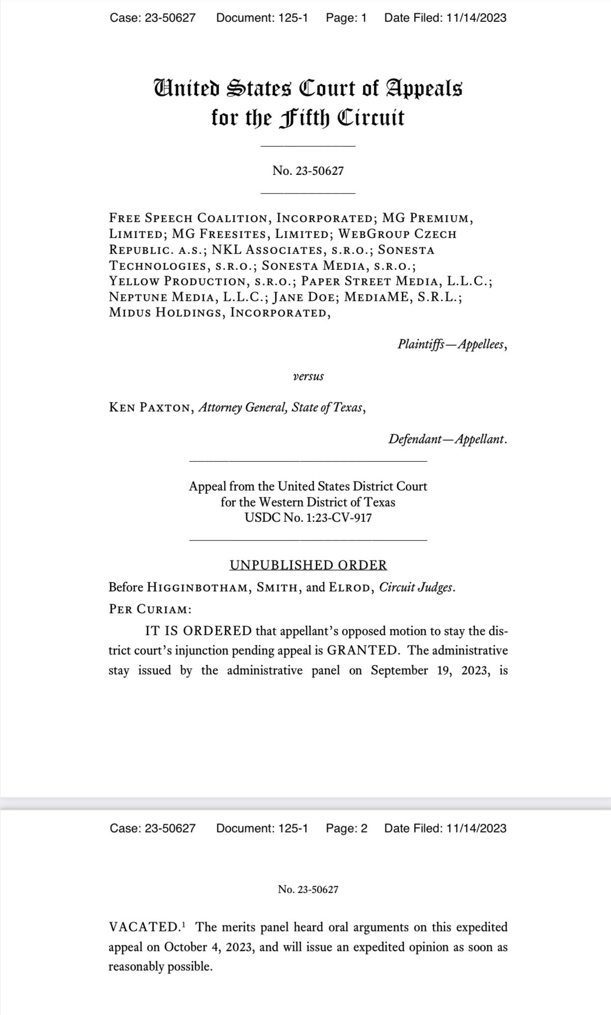 Texas Attorney General Ken Paxton secured a significant win in the U.S. 5th Circuit Court of Appeals against pornography distributors suing to stop Texas from implementing a new law requiring pornography sites to verify whether a user is 18 years or older. The ruling stayed a district court’s injunction against the law, allowing the Office of the Attorney General (“OAG”) to enforce it and protect Texas children.