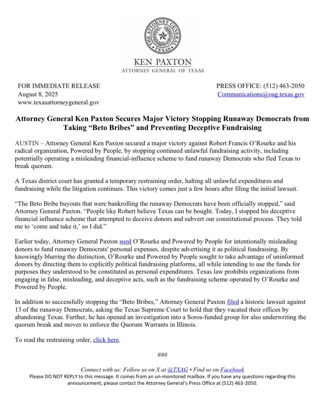 Breaking News from Texas: AG Ken Paxton Scores Court Win Against Beto O’Rourke