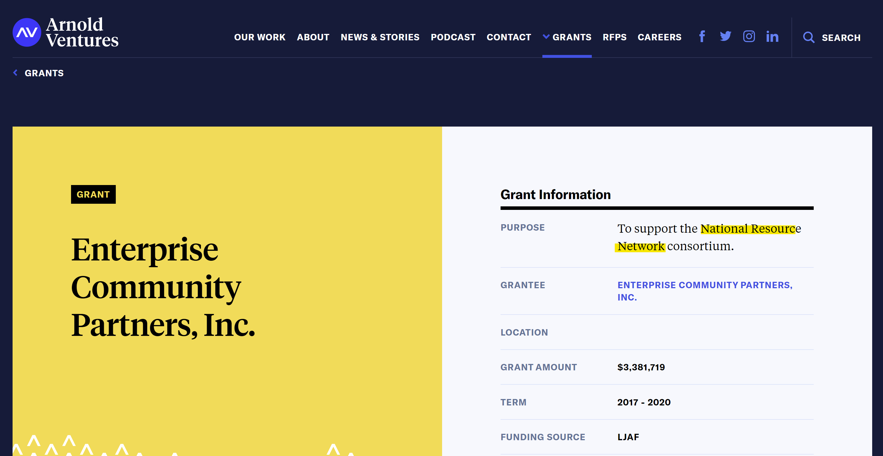 When I received the contracts for PFM, it became blatantly obvious that this Consulting Group is working in lockstep with Obama and the Arnolds. This group has been an integral partner in leading the National Resource Network, an Obama White House initiative, which received 10 million in federal funding, and another 4 million in grants from Arnold Ventures. Not only that, The National Resource Network is partners with PFM, the Urban Institute, HR&A. The Urban Institute has also received tens of millions from none other than Arnold Ventures.