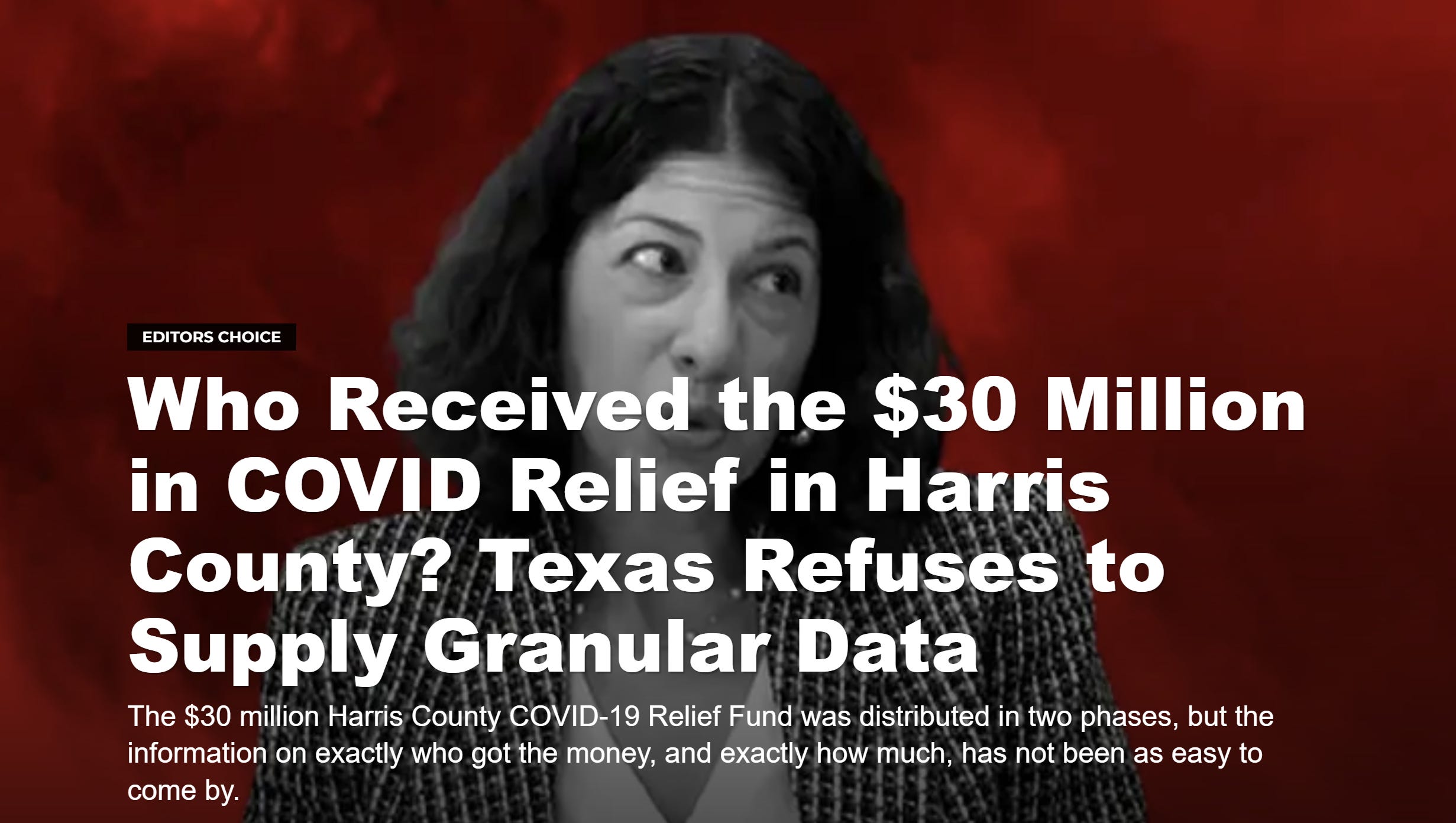 The county hired the Greater Houston Community Foundation to administer the COVID-19 Relief Fund program and paid the foundation $1.5 million. Those were additional funds, separate from the $30 million.