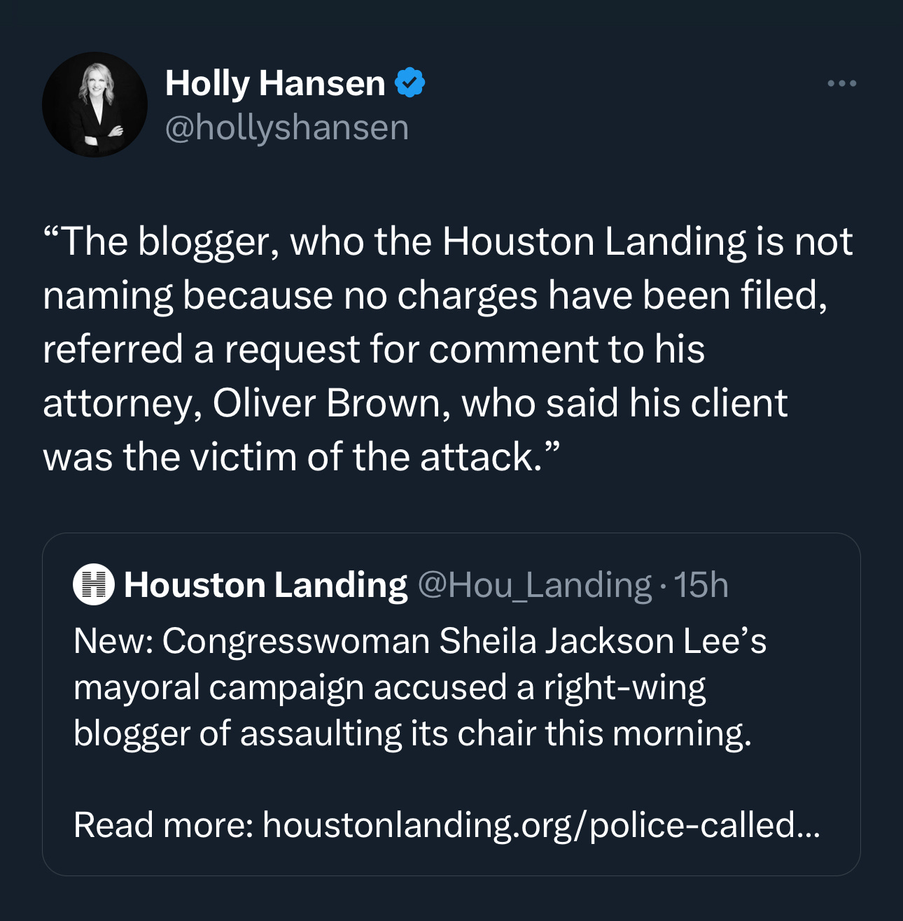 Shejack Chair Claims He Was ‘Assaulted’ All Signs Point to it Never Happening Merissa HansenOct 24, 2023122ShareI’m sure these two things aren’t related… Houston Landing consists of nothing but partisan political operatives.