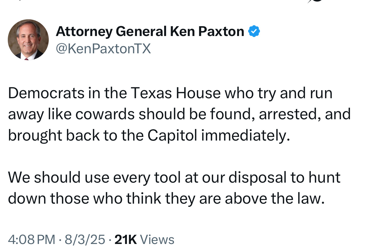 Texans see through it: Polls show only 15% prioritize your pet issue right now, and nearly 70% think it’s unfair for politicians (that’s YOU) to cherry-pick voters. Yet here you are, playing hooky like it’s 2021 all over again.