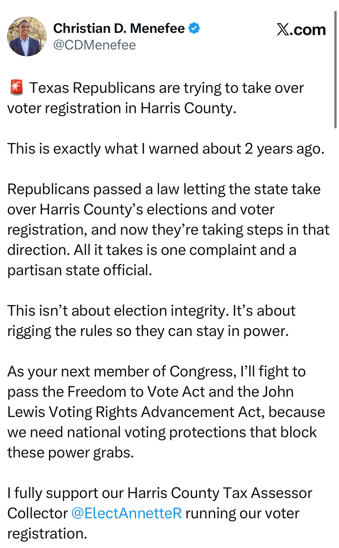 The move comes amid ongoing discussions about election integrity in Texas, where lawmakers have prioritized measures to safeguard voter rolls and prevent fraud. Harris County has faced scrutiny in past elections, including challenges related to mail-in ballots and registration processes, though officials there have defended their practices as compliant and transparent.