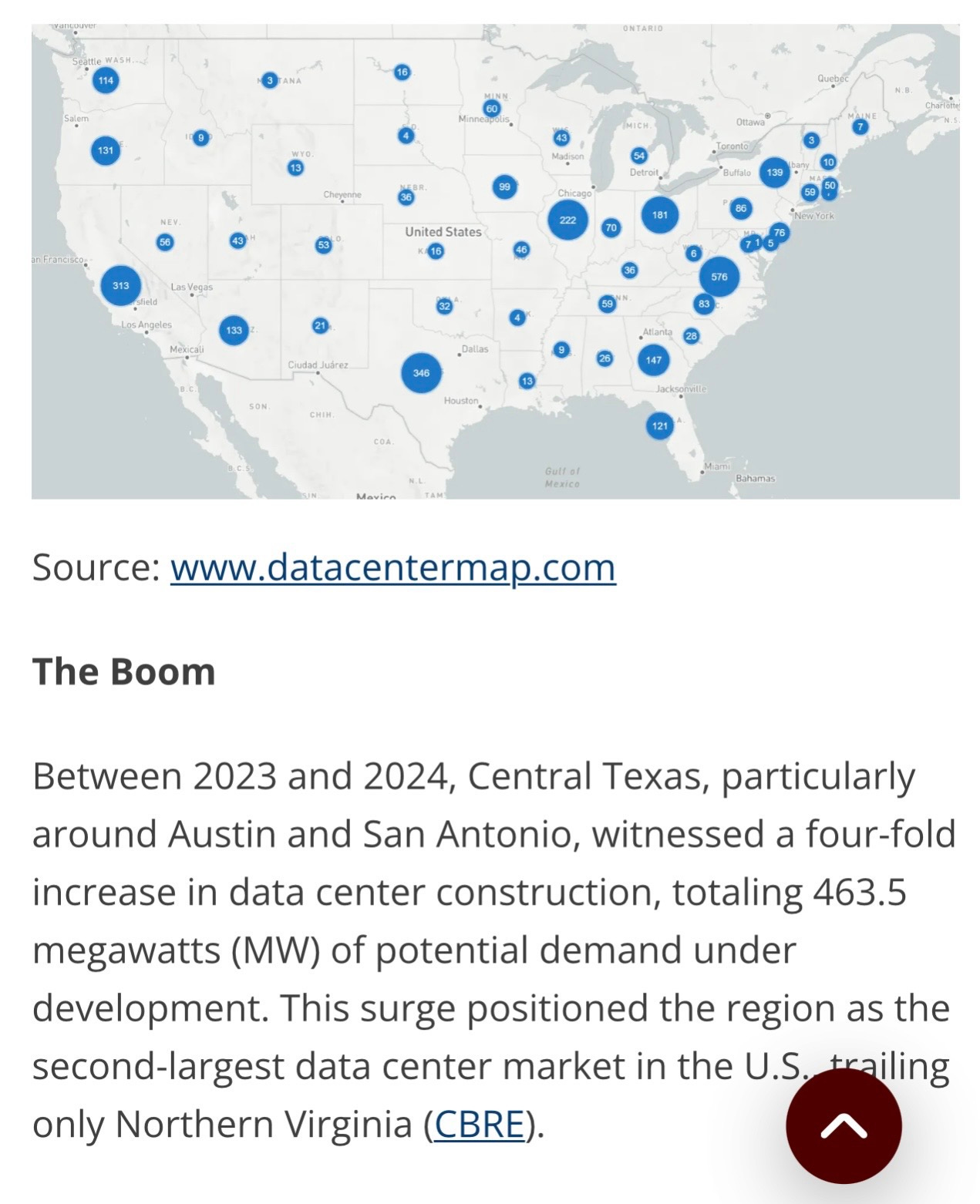 Beyond water, data centers contribute to grid strain, with ERCOT projecting doubled demand by 2031, and environmental racism in areas like Corpus Christi’s Hillcrest neighborhood, where industrial pollution shortens life expectancy. Noise, light pollution, and wastewater harm wildlife and health, as seen in Hays County residents’ opposition to new facilities.