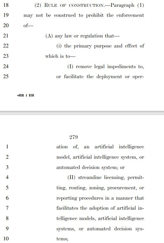 • Implication: This exemption encourages states to promote AI innovation but does not allow them to impose restrictions or regulations that limit AI use, such as safety or ethical guidelines.