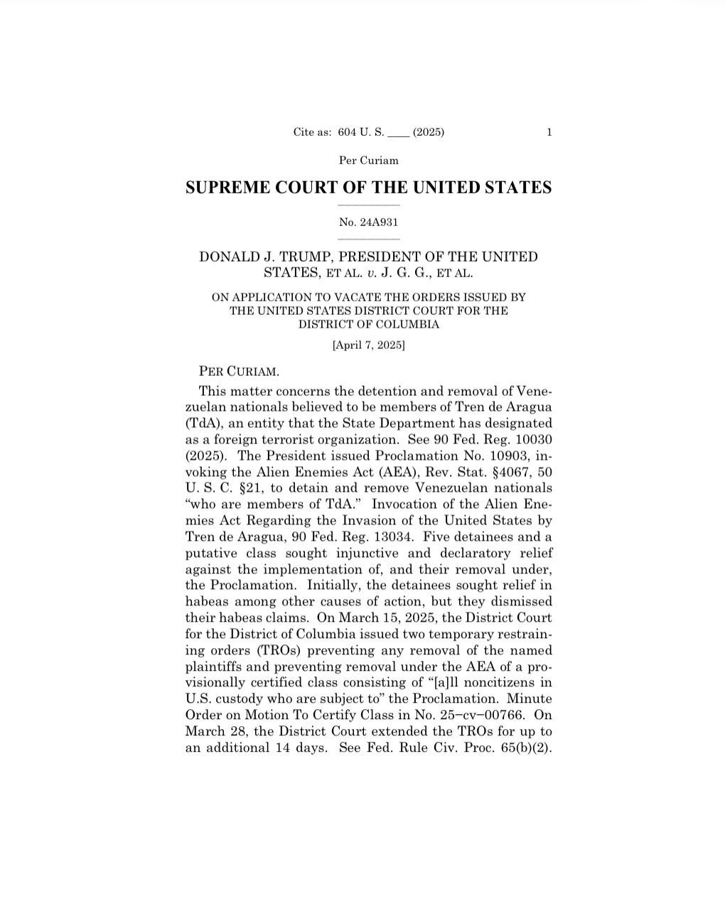 The Supreme Court sides with the Trump Administration on the Alien Enemies Act